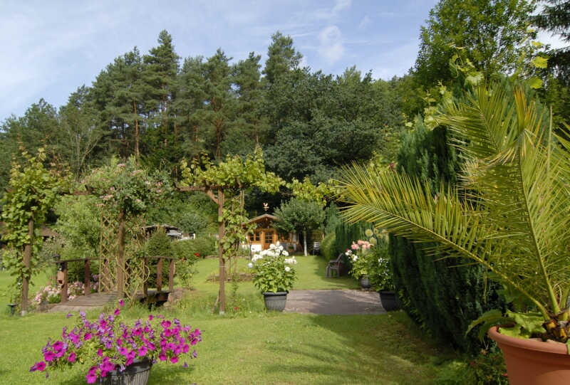 Idyll mit Liegewiese und Gartenteich, oder auf der Terrasse mit Grillplatz.
